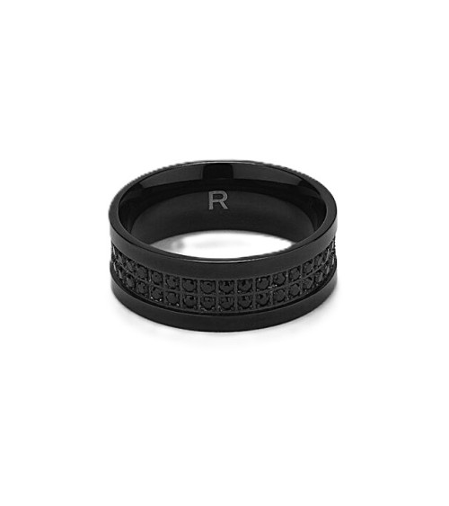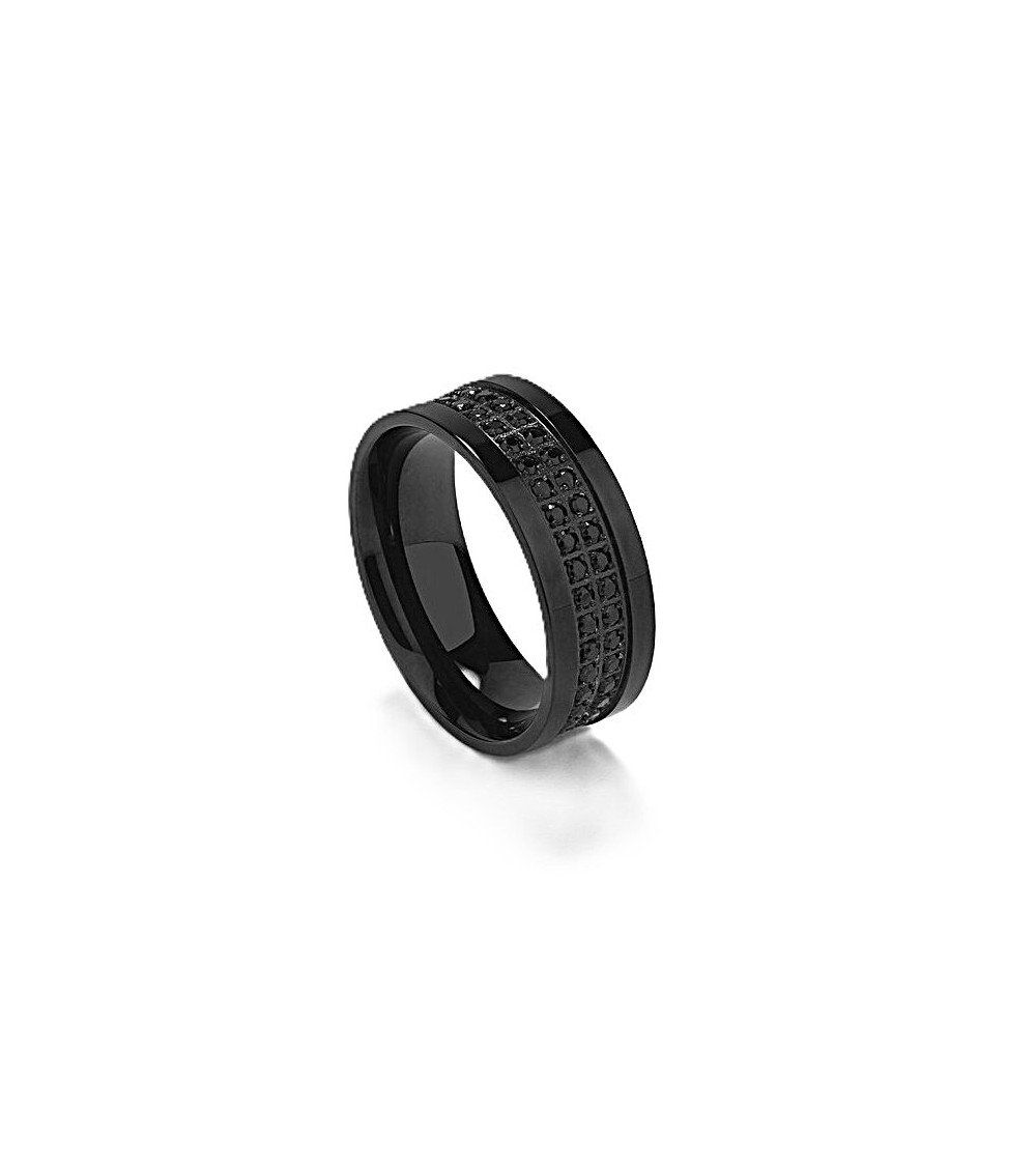 ANILLO PARA HOMBRE Y MUJER ACERO CERÁMICO NEGRO CON ENGASTE DE PIEDRAS.
