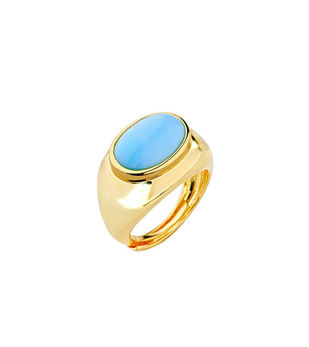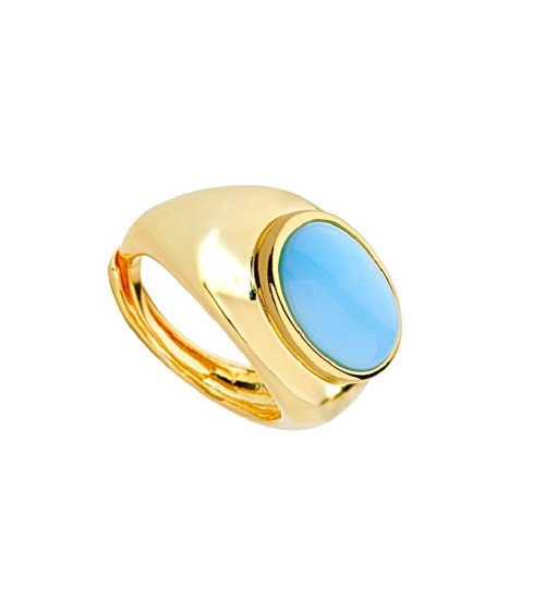 ANILLO DORADO ACERO ANCHO CON TURQUESA OVAL CENTRAL