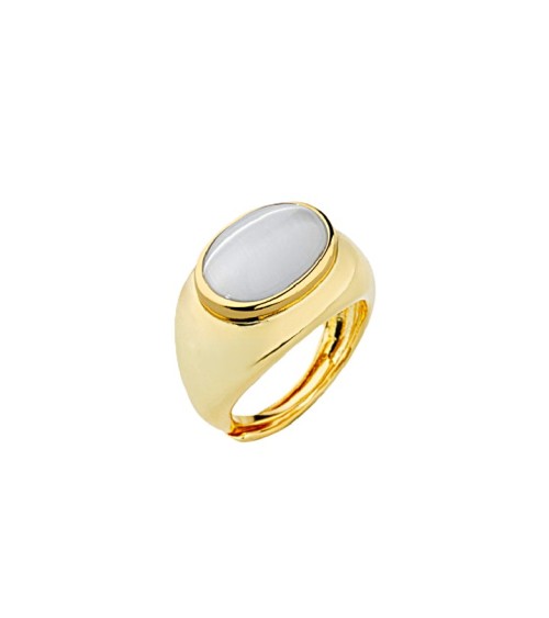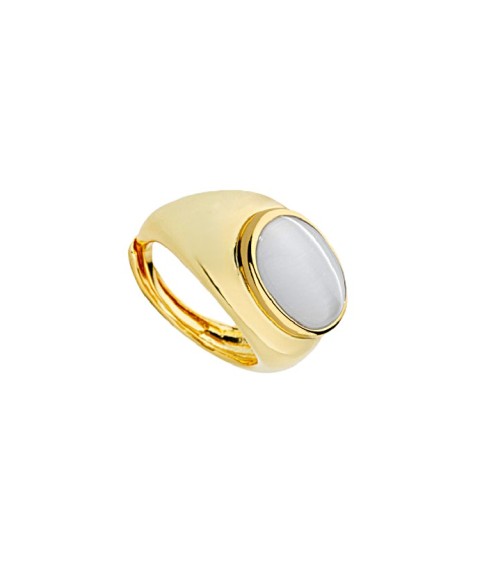 ANILLO BRONCE CHAPADO EN ORO PIEDRA OJO DE GATO COLOR CELESTE