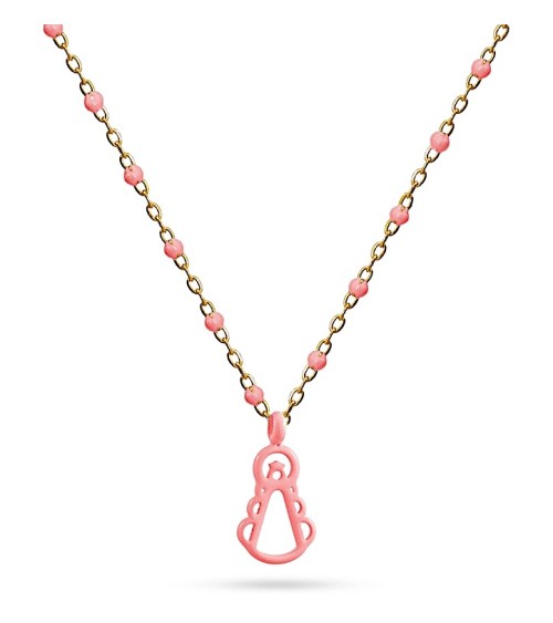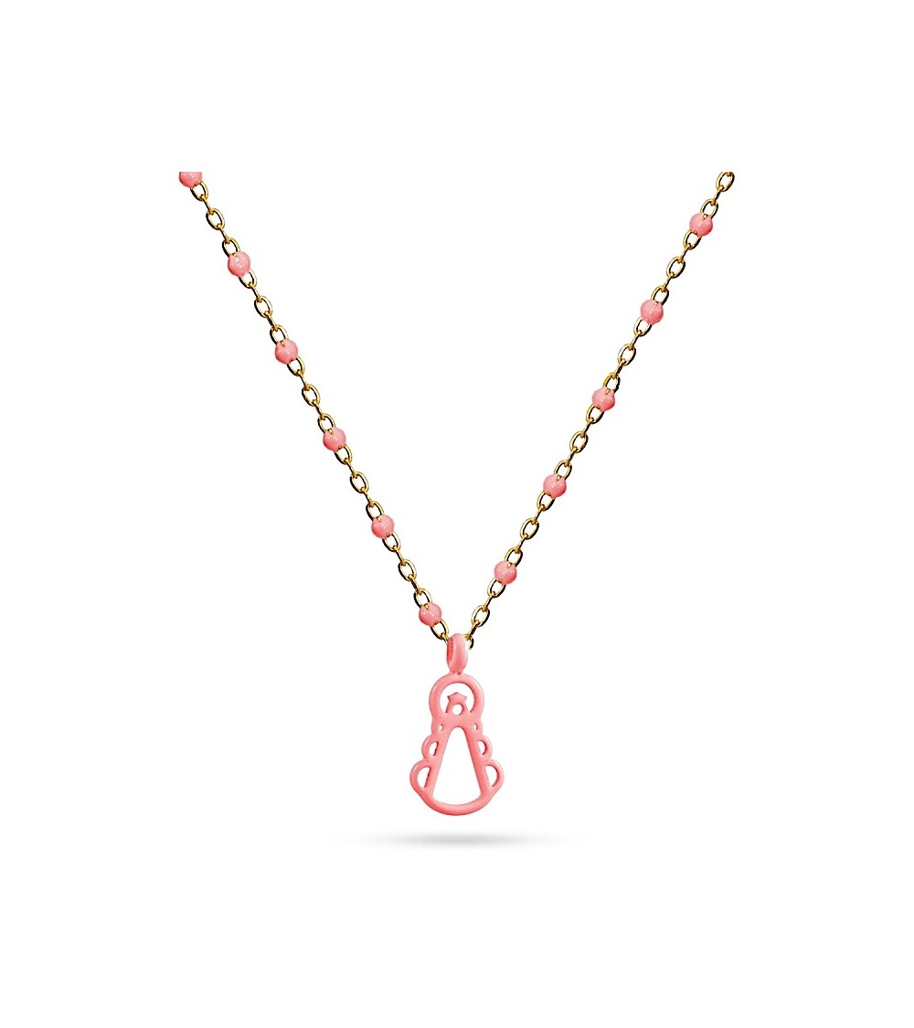 COLLAR CON CADENA DORADA ACERO COMBINADO CON BOLITAS COLGANTE VIRGEN DEL ROCIO