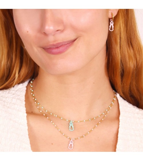 Cadena combinada con bolitas de esmalte rosa