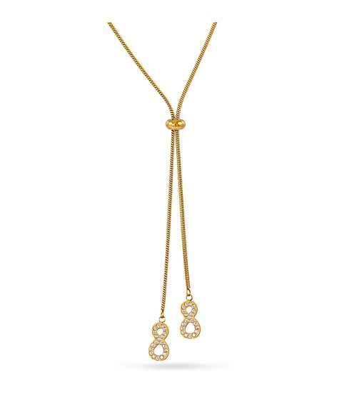 COLLAR ACERO DORADO MODELO CORBATA INFINITO CON CIRCONITAS COLGANDO.