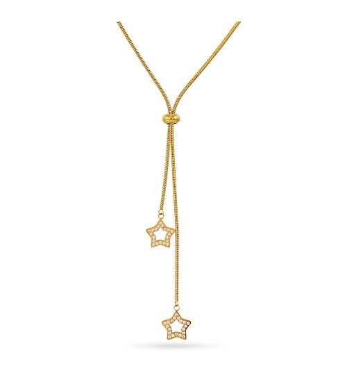 COLLAR ACERO DORADO LARGO DISEÑO REGULABLE DOS ESTRELLAS CON CIRCONITAS