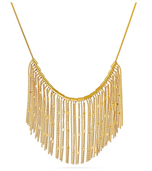 COLLAR ACERO DORADO CON CADENITAS COLGANDO MODELO FLECOS