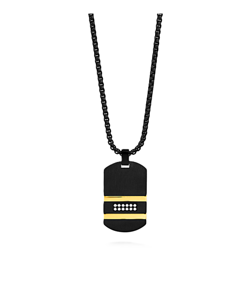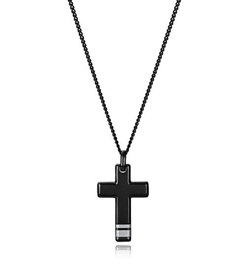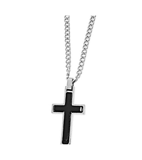 CADENA ACERO PLATEADA Y COLGANTE DE CRUZ COLOR NEGRO