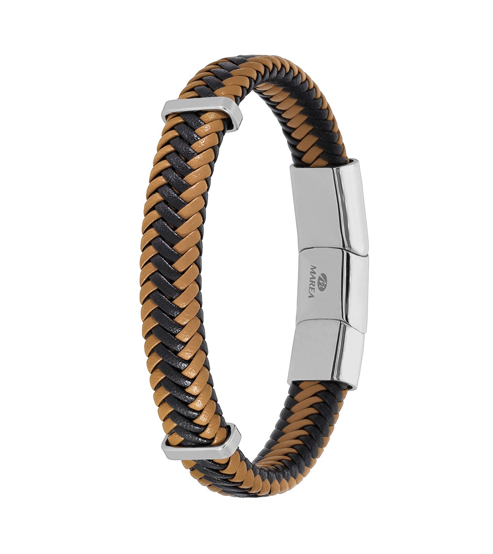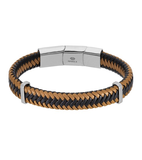 PULSERA DE HOMBRE CUERO TRENZADO MARRÓN Y NEGRO CIERRE REGULABLE