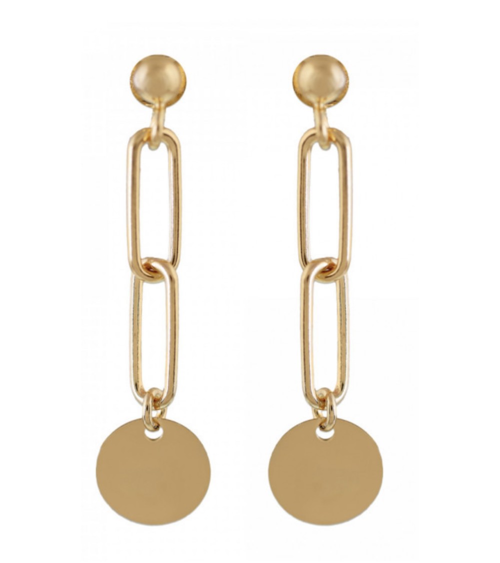 PENDIENTE PLATA 1ª LEY CHAPADO EN ORO BOLA ESLABÓN Y MEDALLA