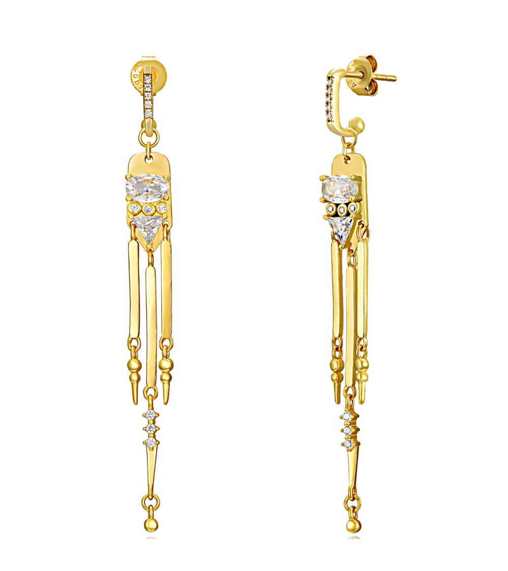 PENDIENTE PLATA 1ª LEY CHAPADO EN ORO CON CIRCONITAS.