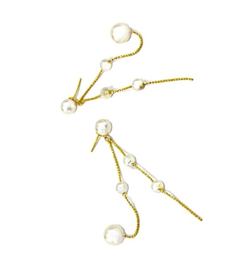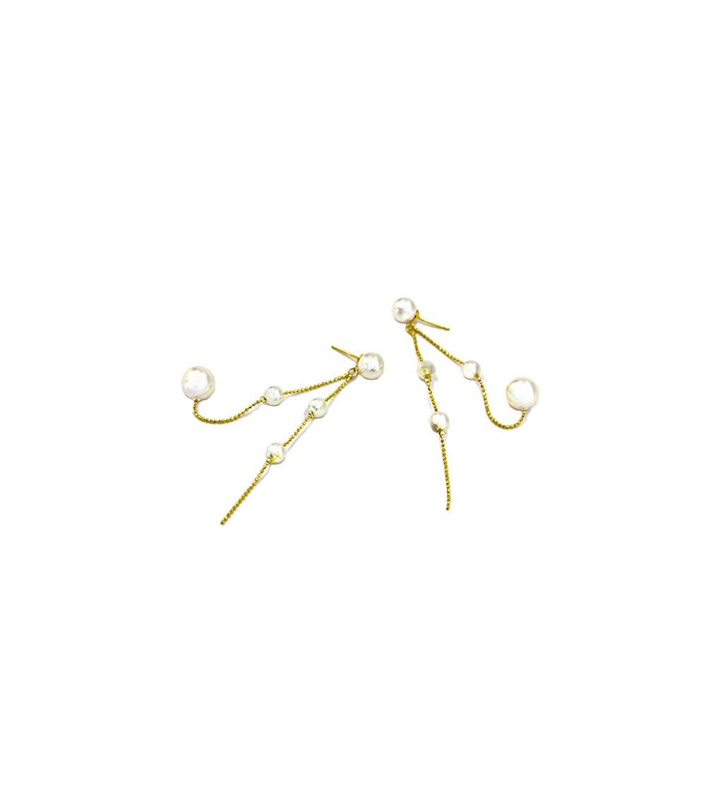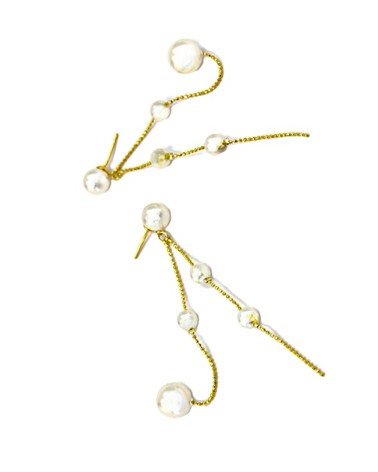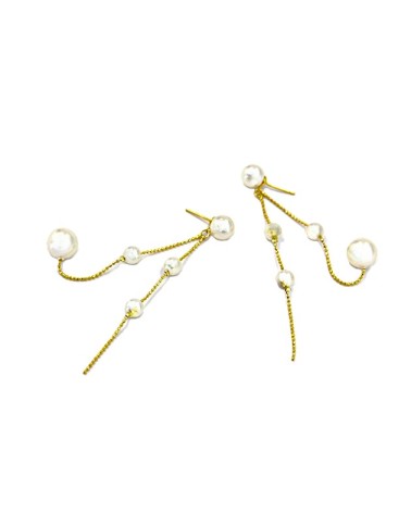 PENDIENTE PLATA 1ª LEY CHAPADO EN ORO LARGO CON PERLAS COLGANDO