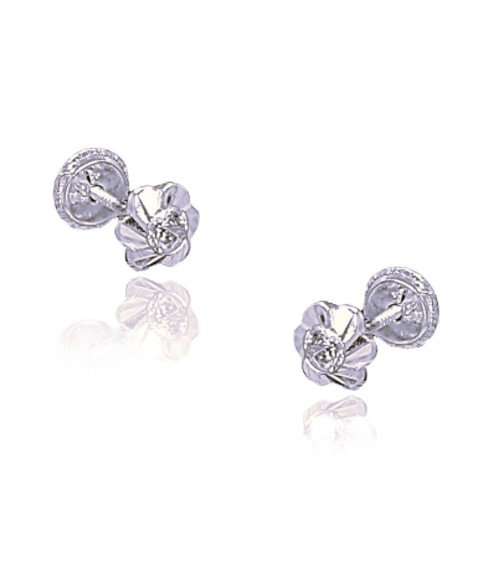 PENDIENTE ORO BLANCO 18 KLTS FLOR CON CIRCONITA