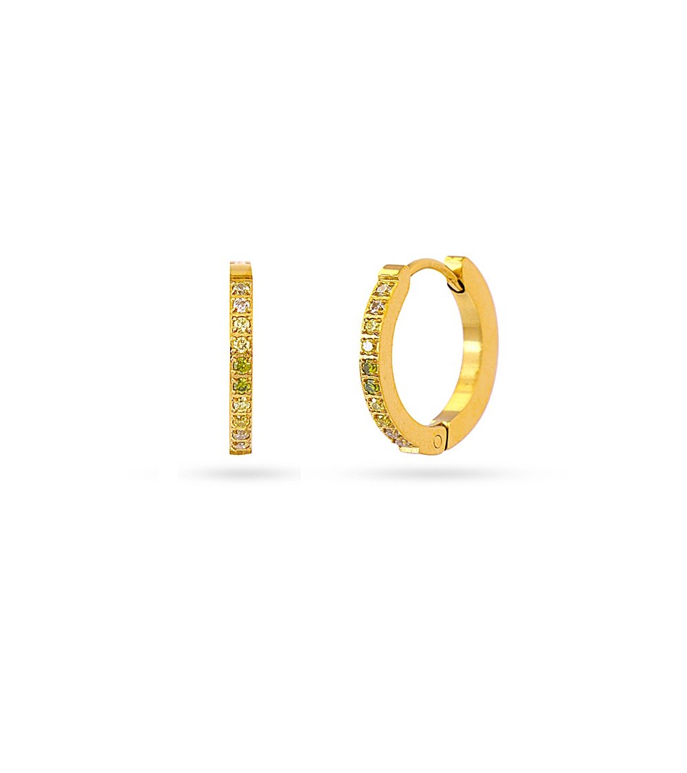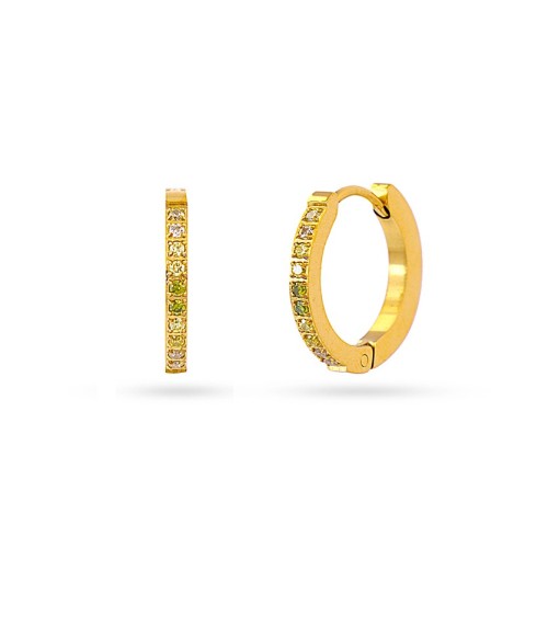 PENDIENTE DE ARO ACERO DORADO ANTIALÉRGICO PIEDRAS TONO VERDE