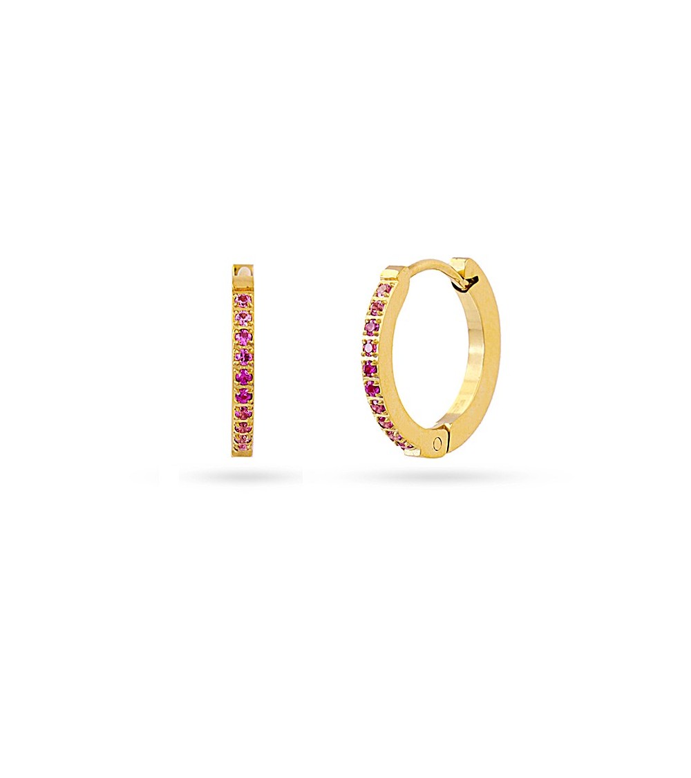PENDIENTE DE ARO ACERO DORADO ANTIALÉRGICO PIEDRAS TONO ROSA