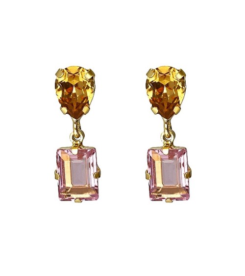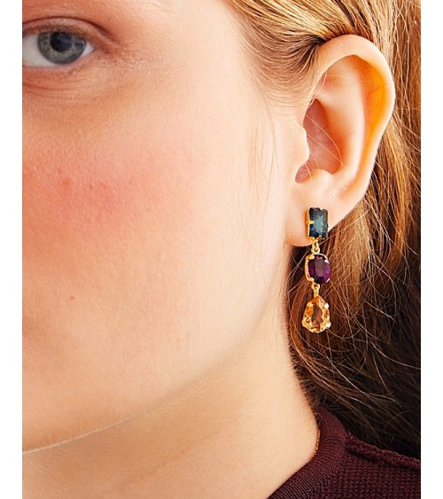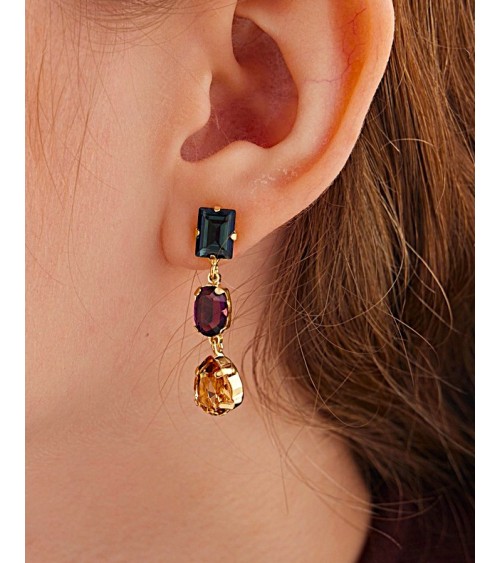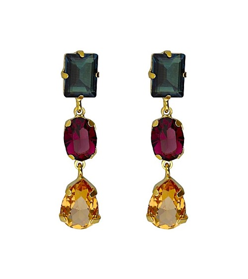 PENDIENTE PLATA 1ª LEY CHAPADO EN ORO TRES PIEDRAS AZUL MORADO Y AMARILLO