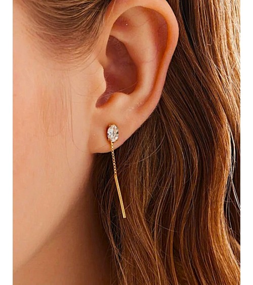 PENDIENTE PLATA 1ª LEY CHAPADO EN ORO CIRCONITA Y CADENITA COLGANDO