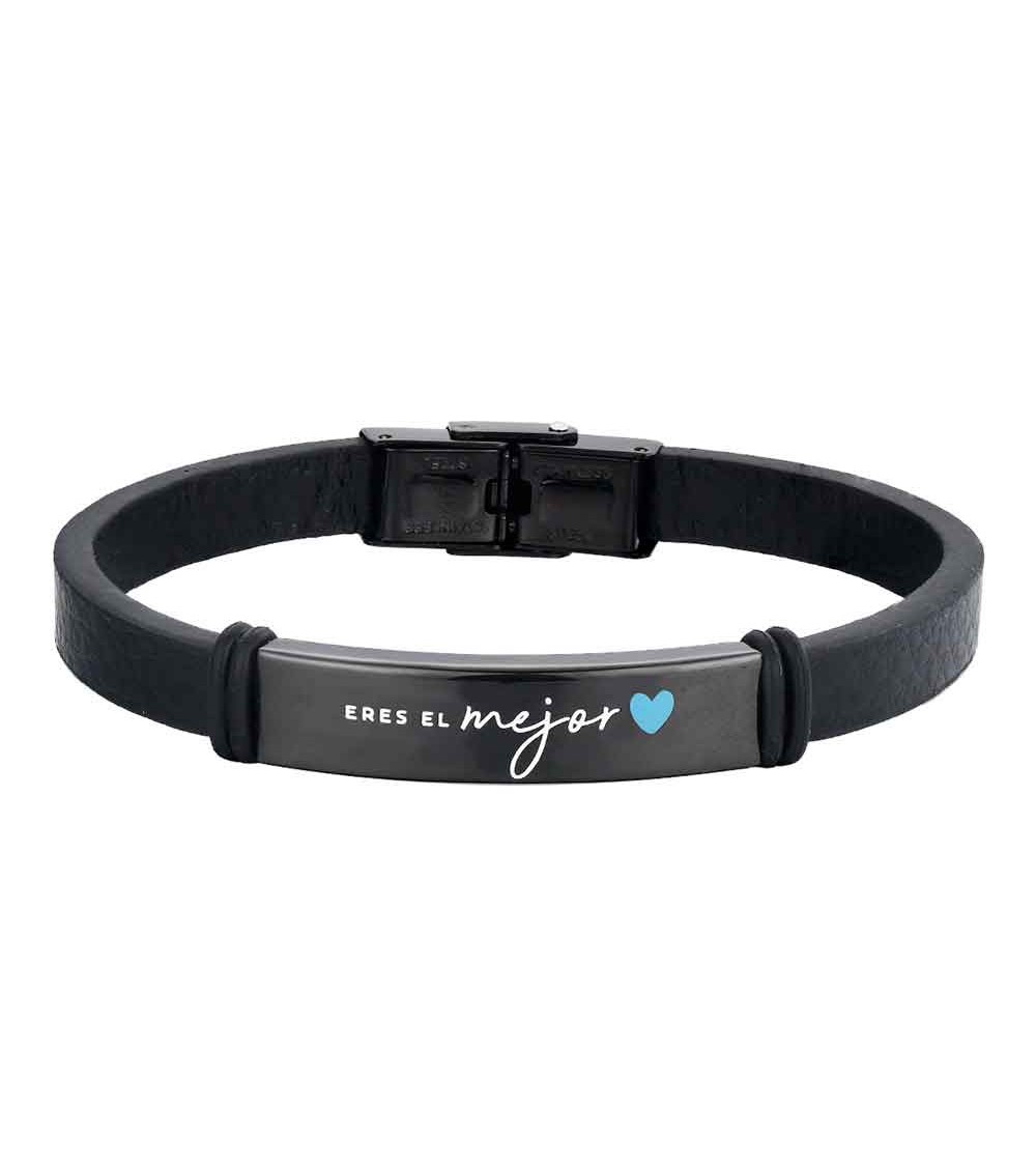 PULSERA HOMBRE PERSONALIZADA CUERO Y ACERO COLOR NEGRO.