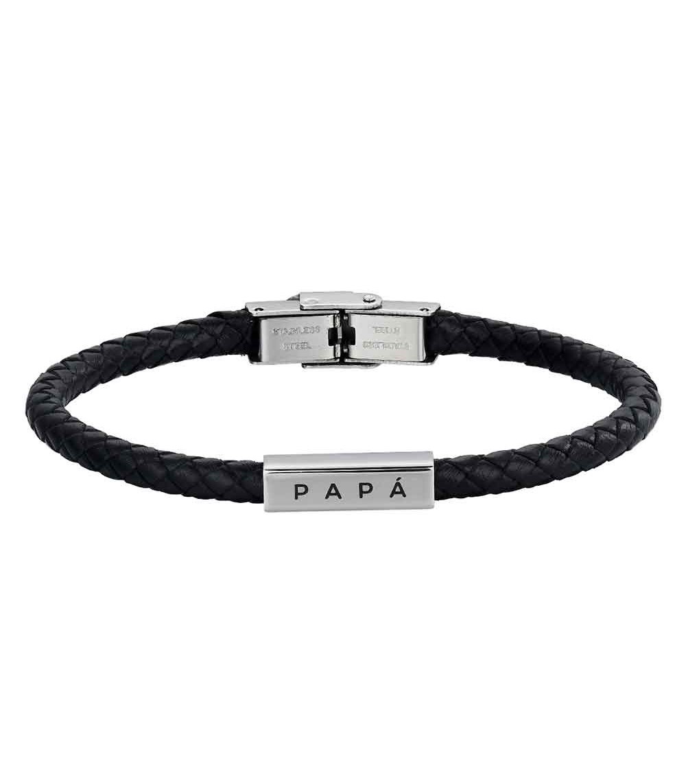 PULSERA HOMBRE ESPECIAL DIA DEL PADRE CUERO NEGRO Y ACERO PERSONALIZADA PAPÁ