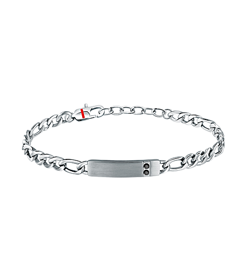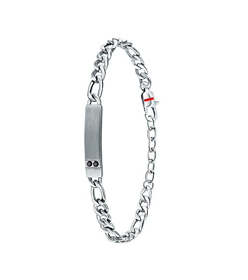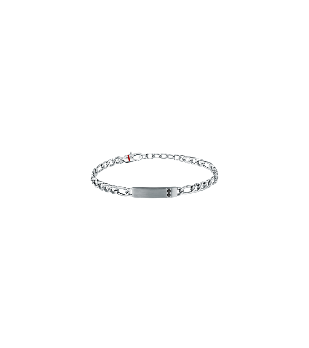 PULSERA ESCLAVA UNISEX ESLABONES Y CHAPA ACERO MATE CON PIEDRA NEGRA.
