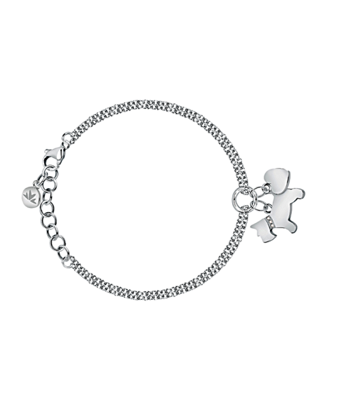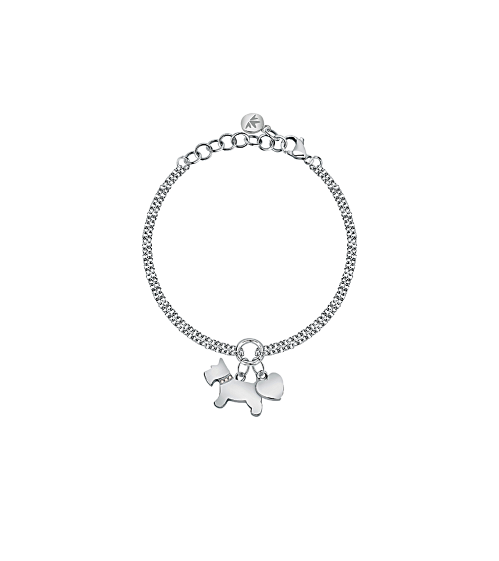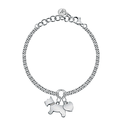 PULSERA DE ACERO CON ABALORIO DE PERRO Y CORAZÓN COLGANDO