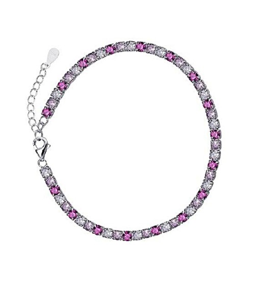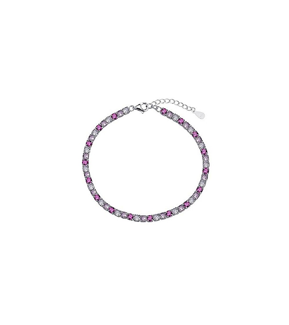 PULSERA PLATA 1ª LEY RIVIER CON CIRCONITAS COMBINADAS COLOR MALVA