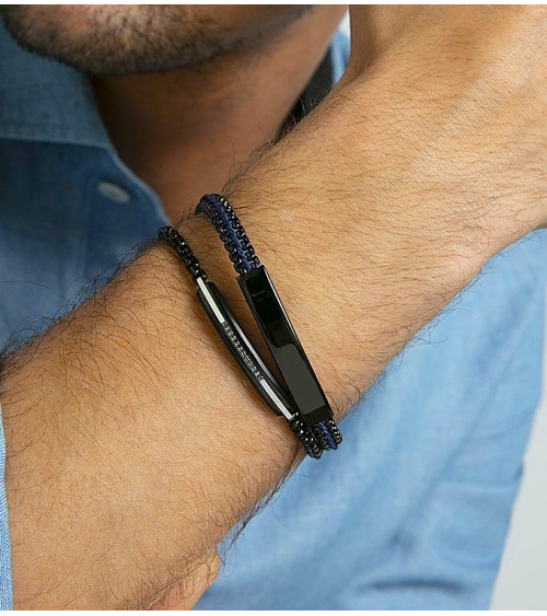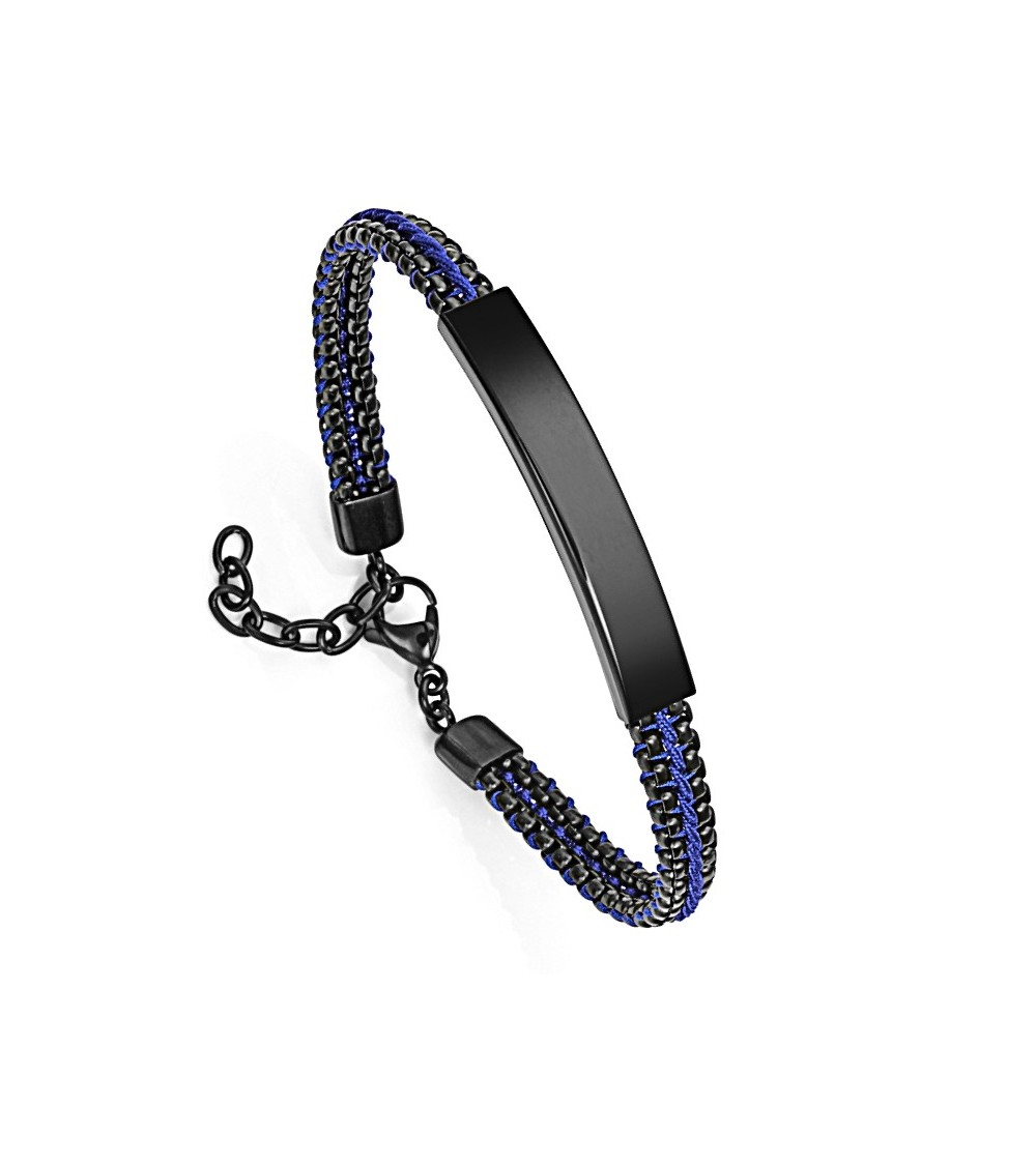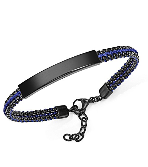 PULSERA DE HOMBRE ACERO NEGRO CON CORDÓN AZUL Y PLACA