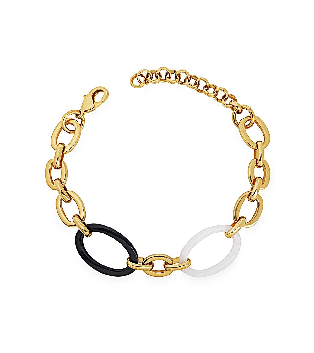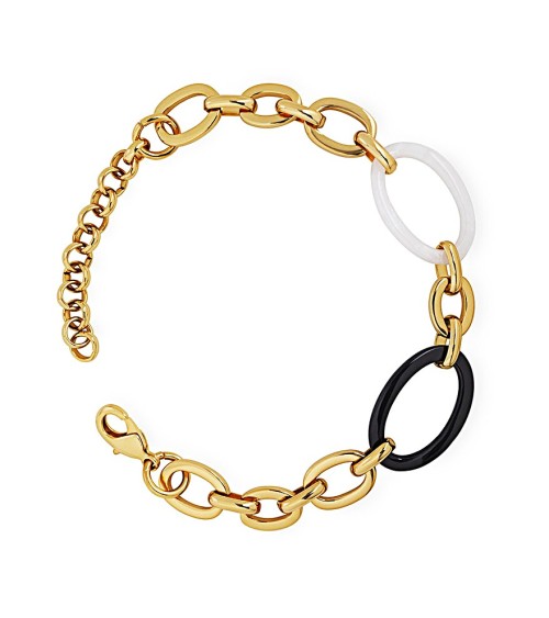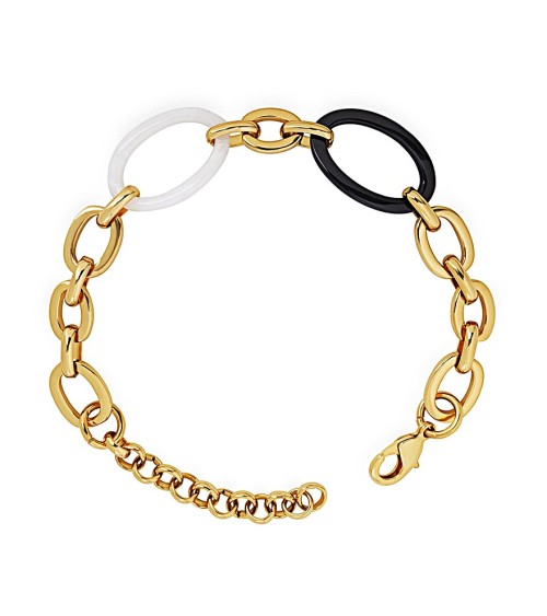 PULSERA DORADA ESLABONES COMBINADOS BLANCO Y NEGRO