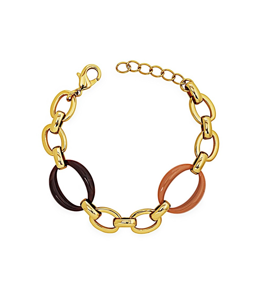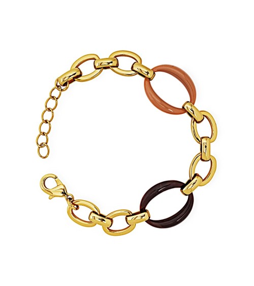 PULSERA ESLABONES DORADOS COMBINADO CON COLOR CAFÉ