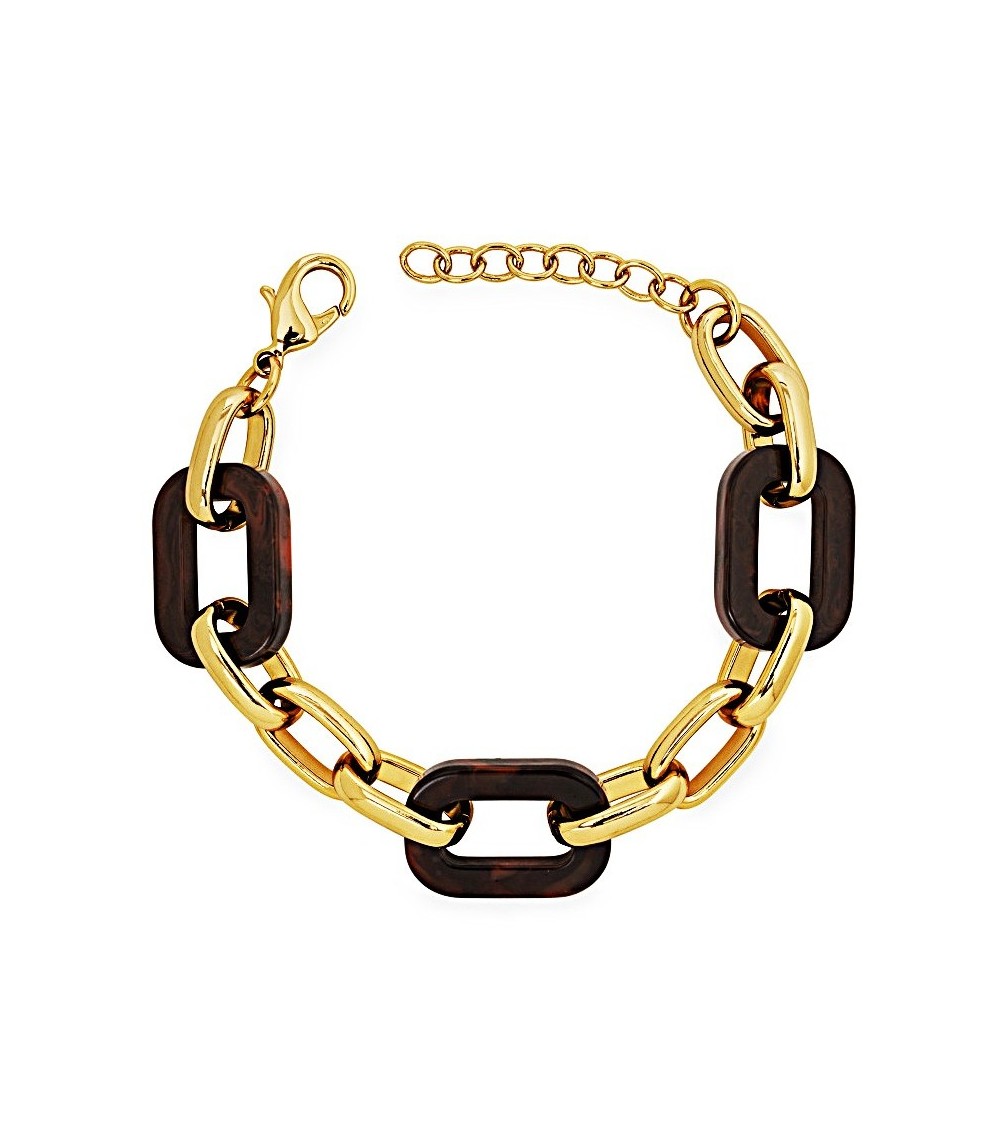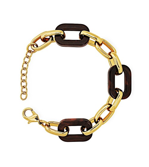 PULSERA ESLABONES DORADOS COMBINADA CON COLOR MOKA