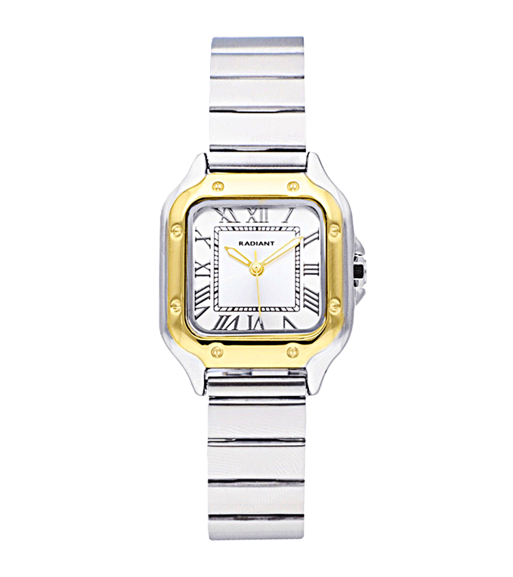 RELOJ DE MUJER ACERO BICOLOR CAJA CURADRADA NÚMEROS ROMANOS