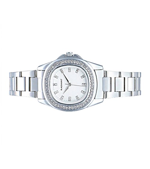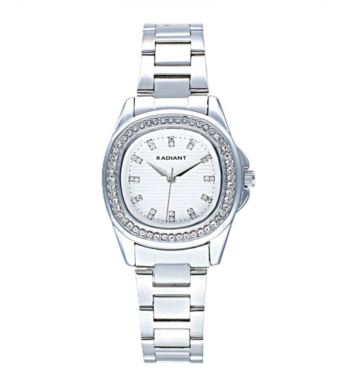 RELOJ DE MUJER ACERO PLATEADO ORLA DE CIRCONITAS ESFERA BLANCA