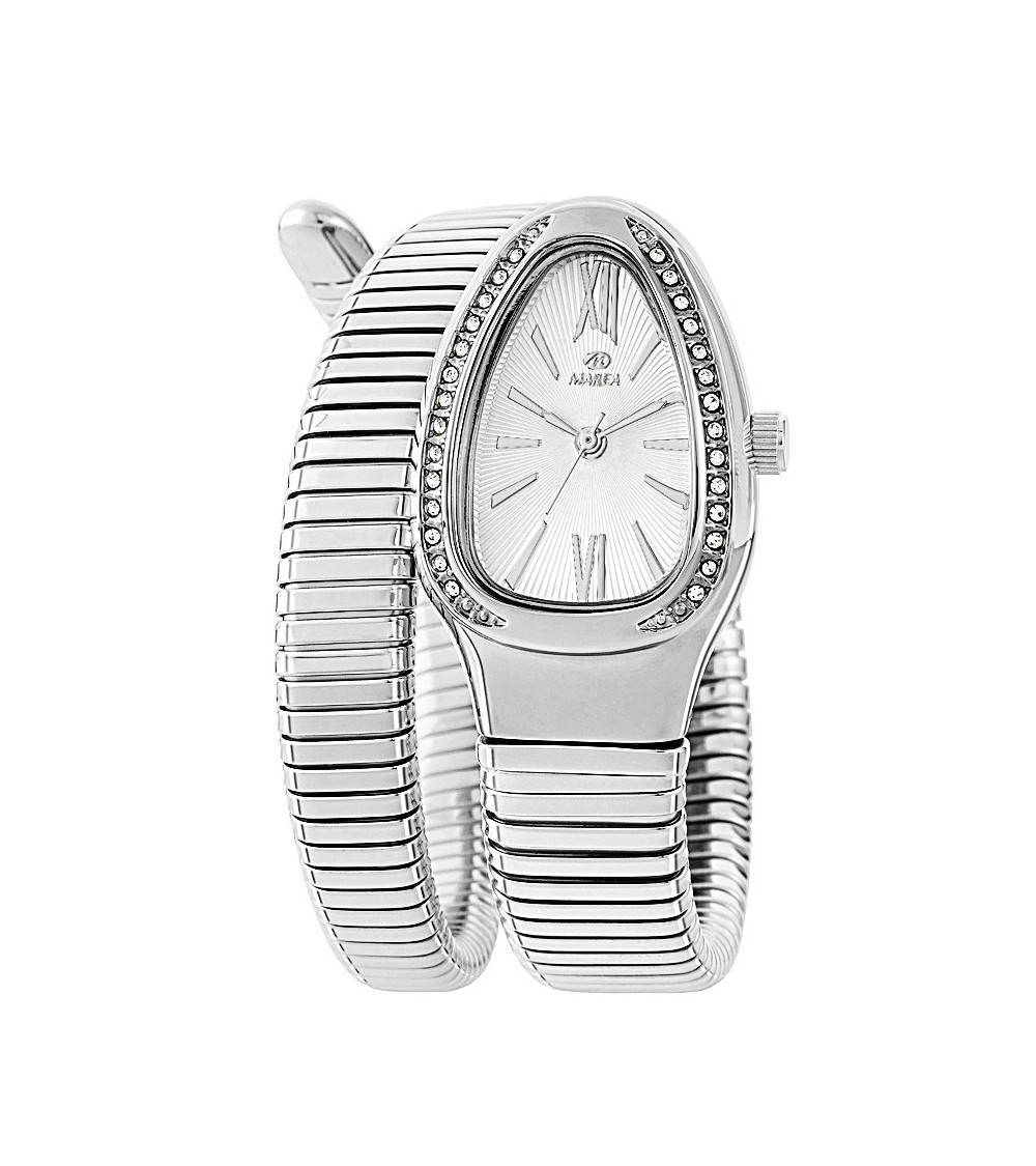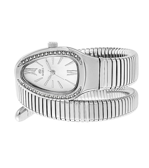 RELOJ JOYA ACERO PLATEADO CAJA OVAL CON CIRCONITAS PULSERA EXTENSIBLE