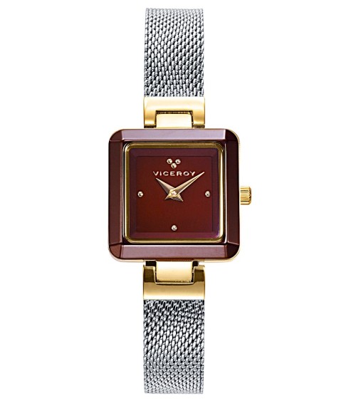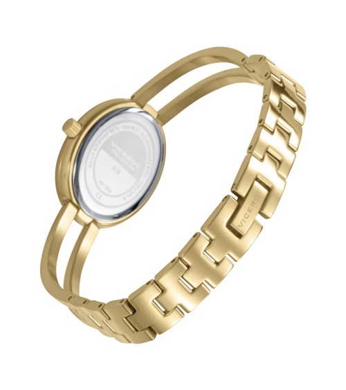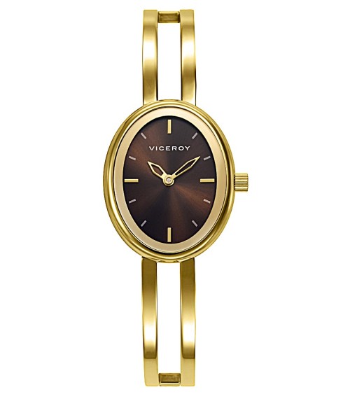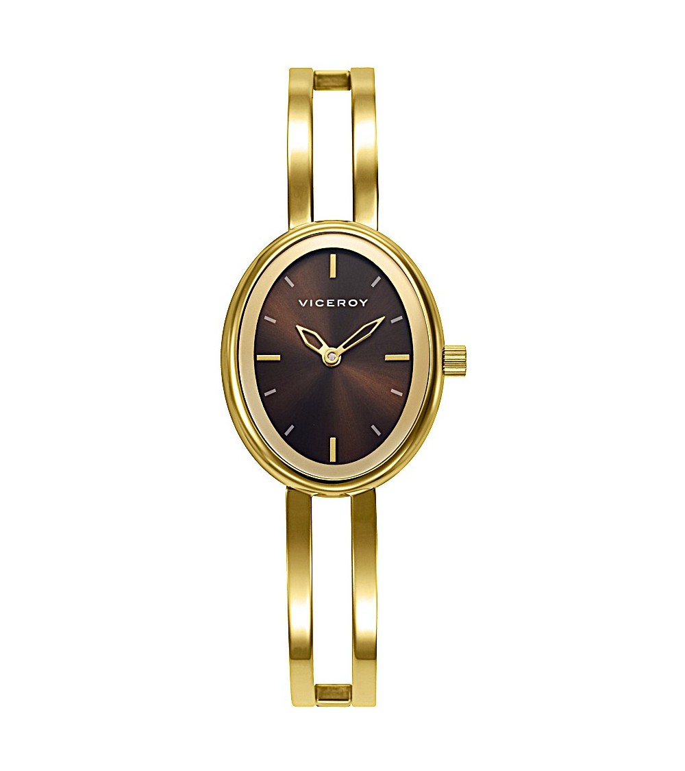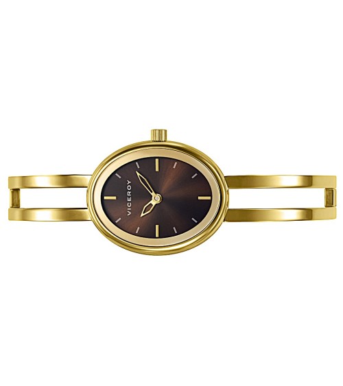 RELOJ DE MUJER ACERO IP DORADO CAJA OVAL FONDO MARRÓN BRAZALETE 0