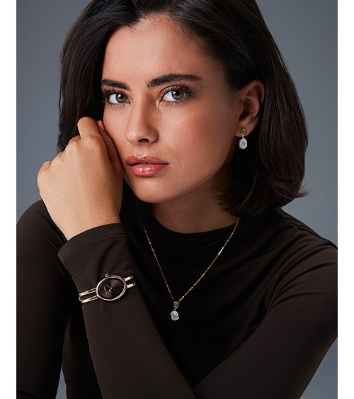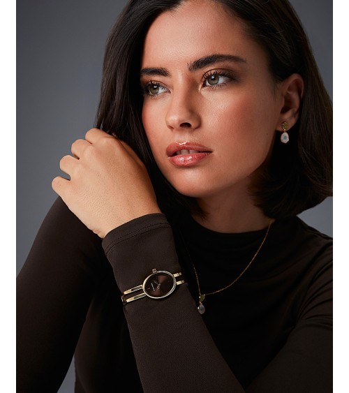 RELOJ DE MUJER ACERO IP DORADO CAJA OVAL FONDO MARRÓN BRAZALETE