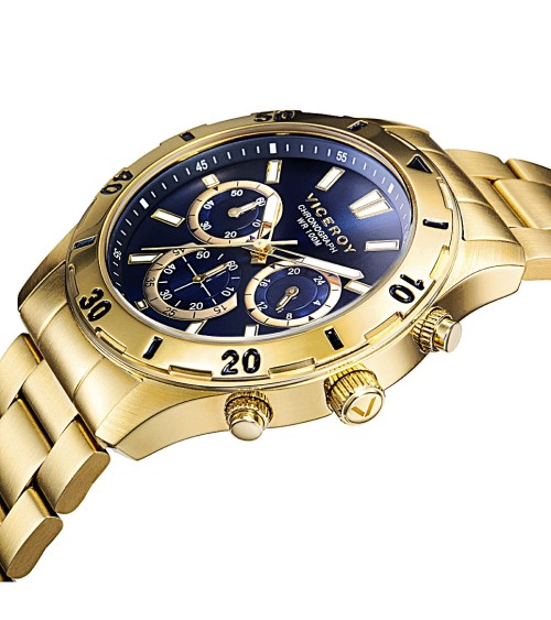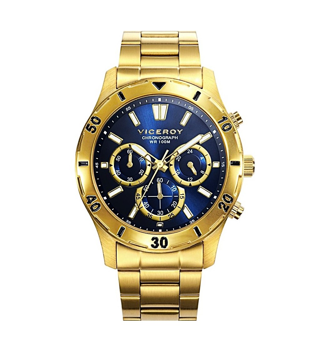 RELOJ DE HOMBRE IP DORADO BRAZALETE Y CAJA ACERO ESFERA AZUL