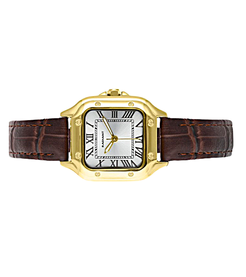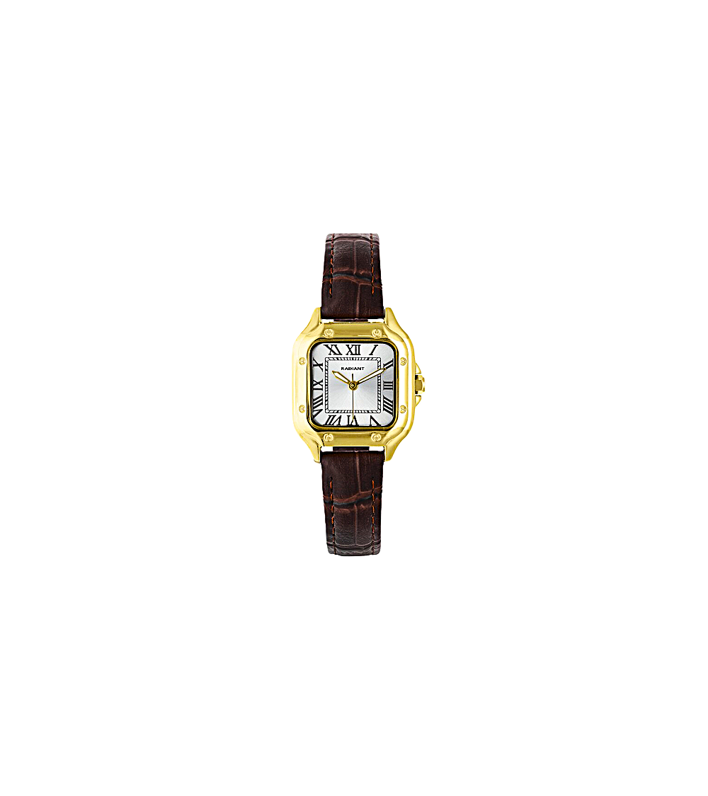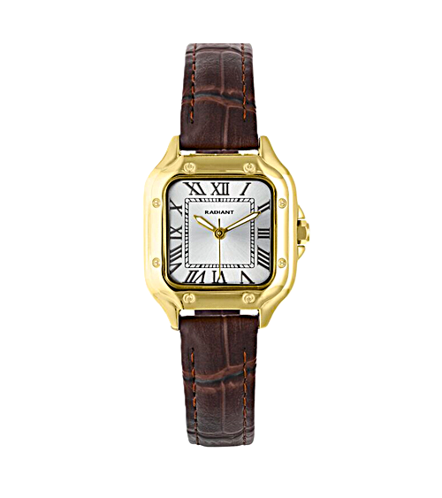 RELOJ DE MUJER CAJA ACERO DORADA CUADRODO CORREA PIEL MARRÓN