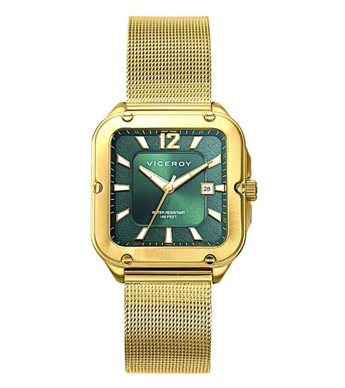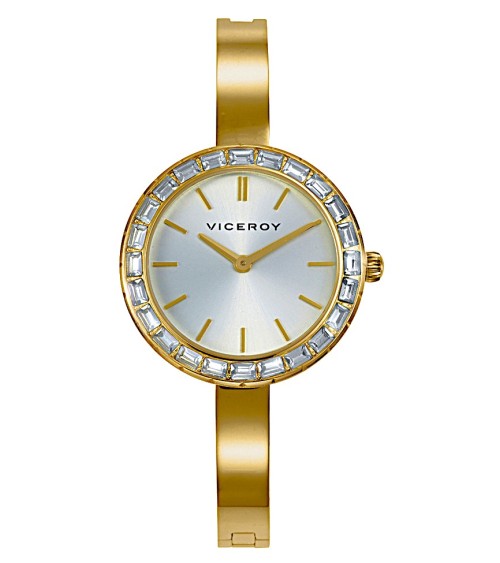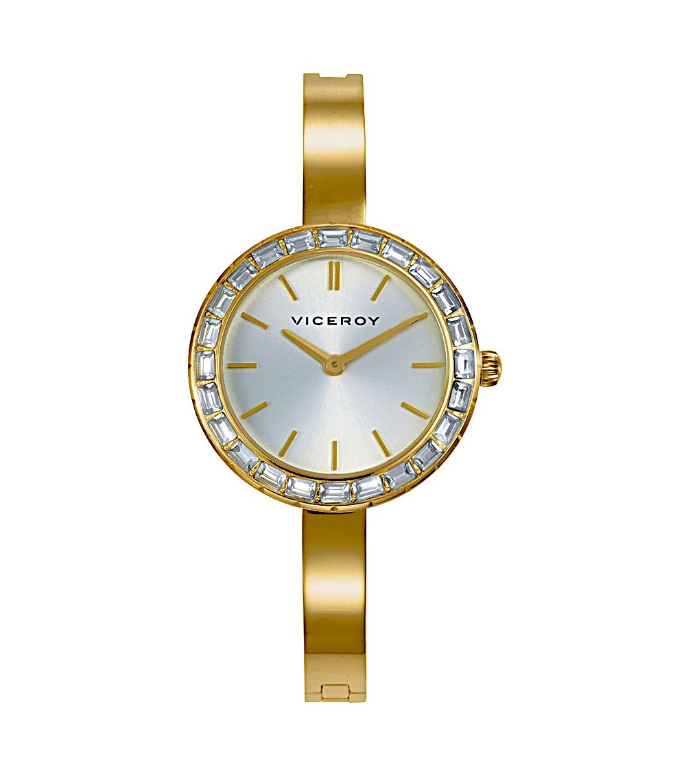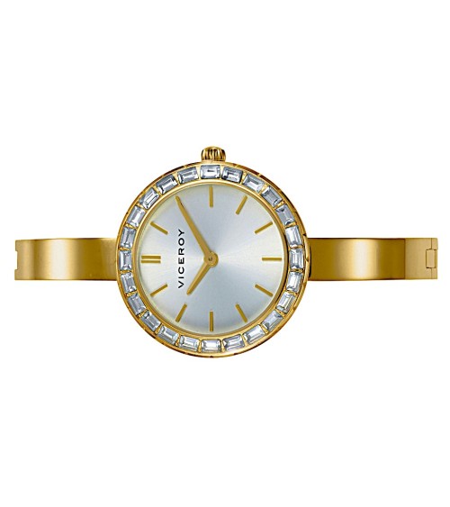 RELOJ DE MUJER ACERO DORADO BRAZALETE SEMIRÍGIDO CON CIRCONITAS EN EL BISEL