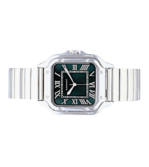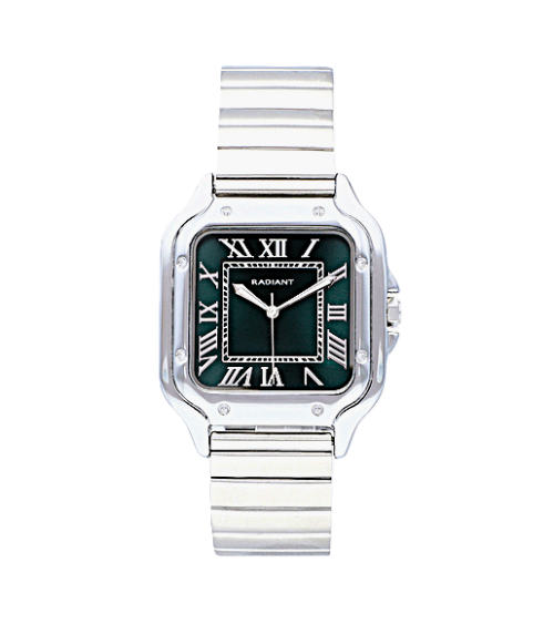RELOJ DE HOMBRE ACERO ESFERA VERDE CAJA CUADRADO NÚMEROS ROMANOS