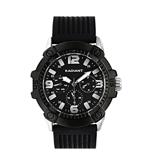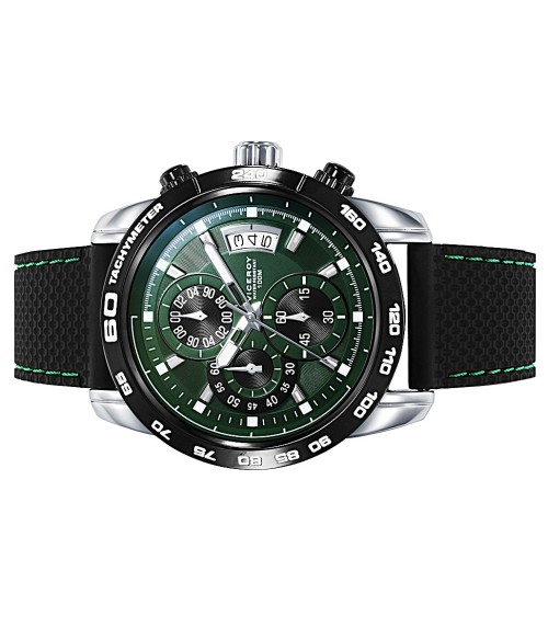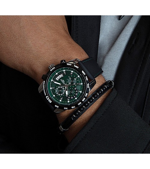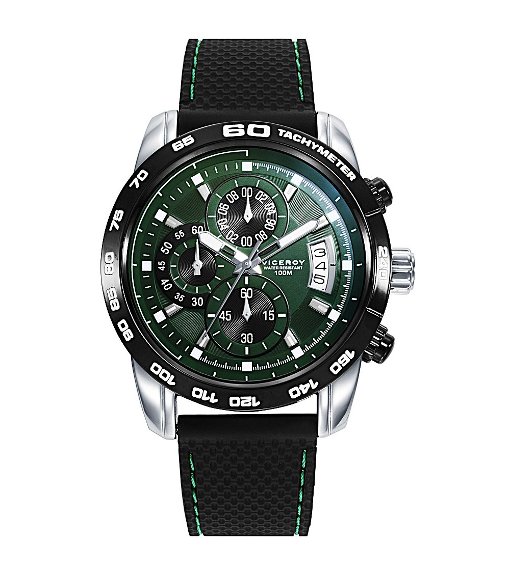 RELOJ DE HOMBRE CRONÓGRADO CORREA CAUCHO NEGRA CAJA ACERO FONDO VERDE NEGRO