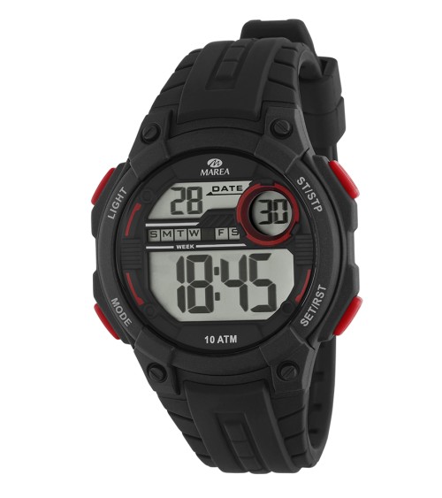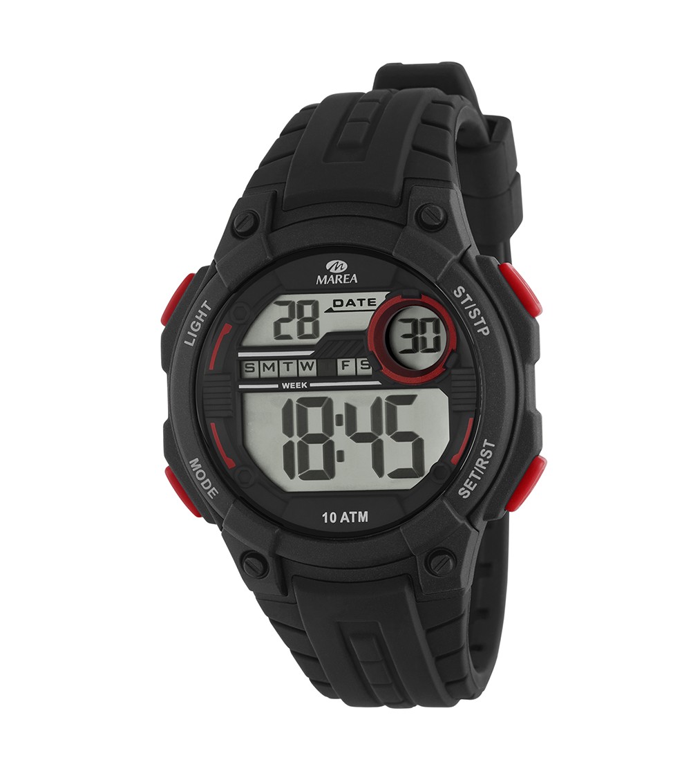 RELOJ DE HOMBRE DIGITAL CAUCHO NEGRO DETALLES EN ROJO